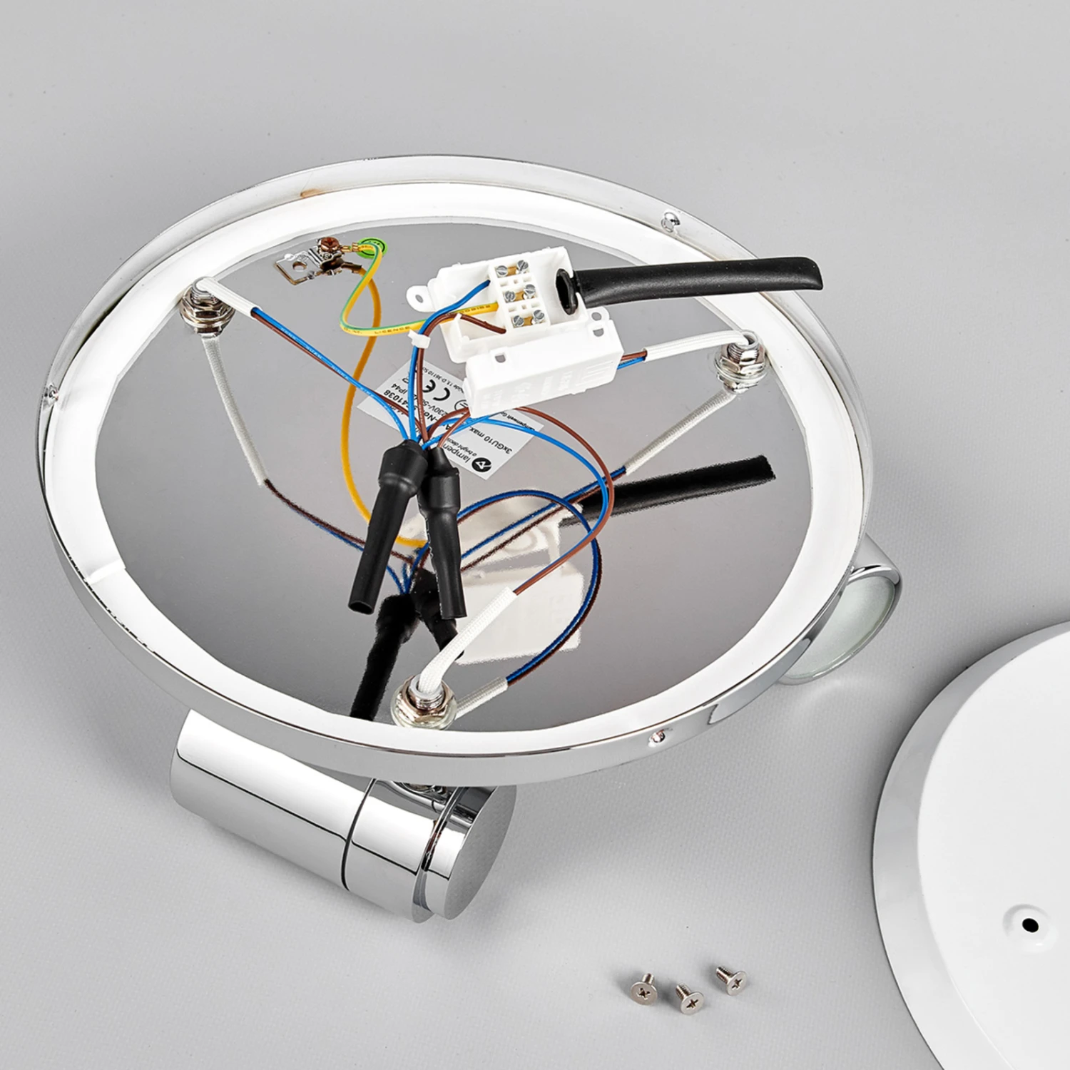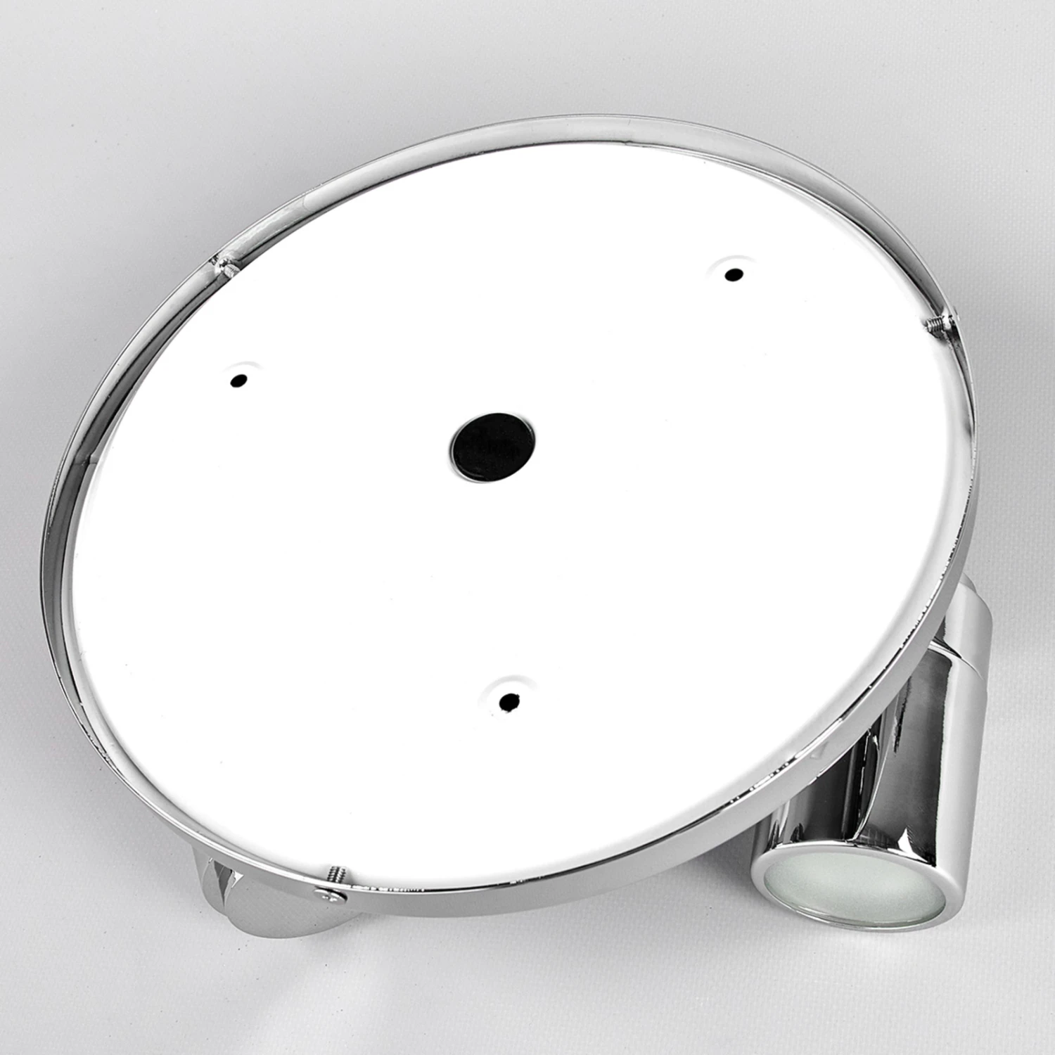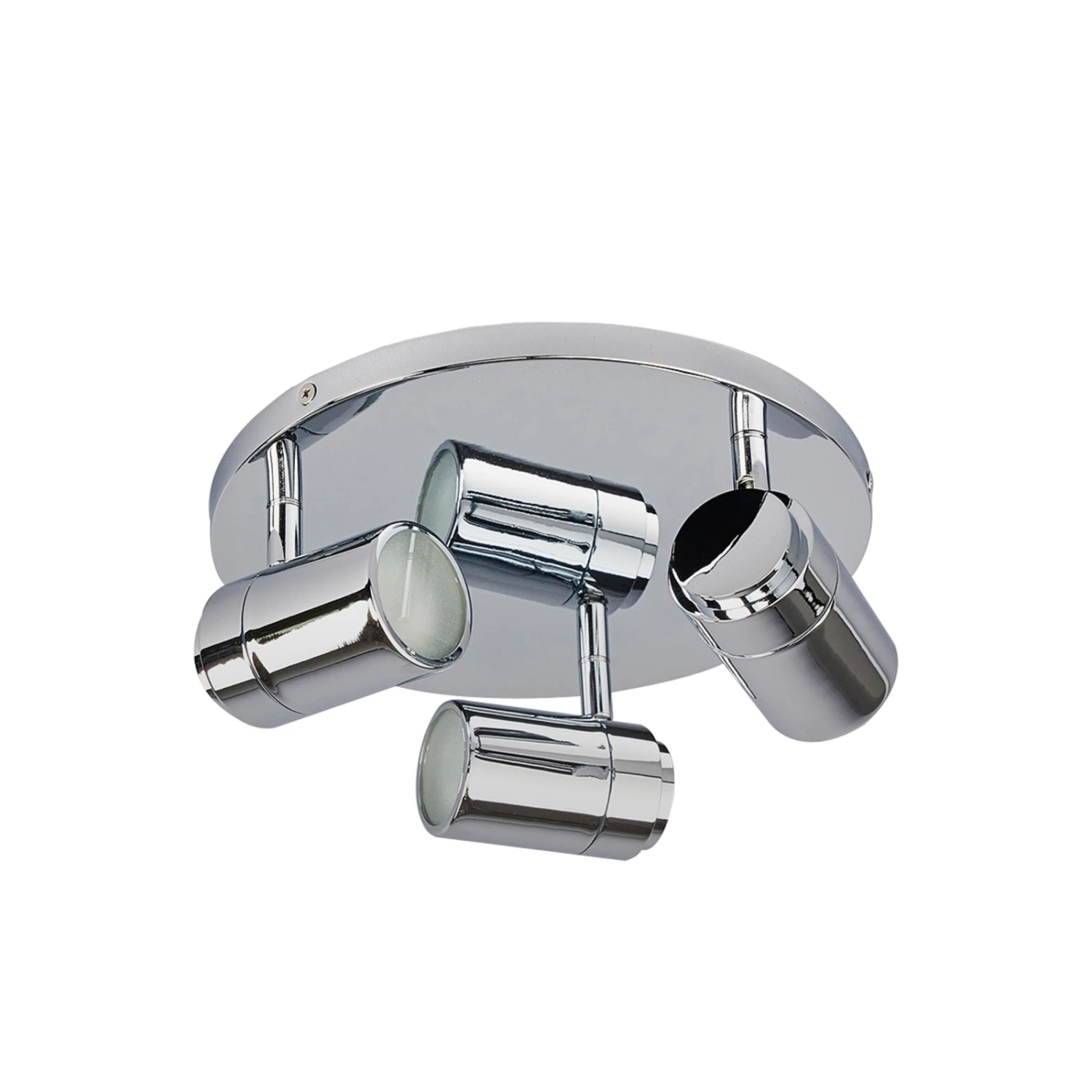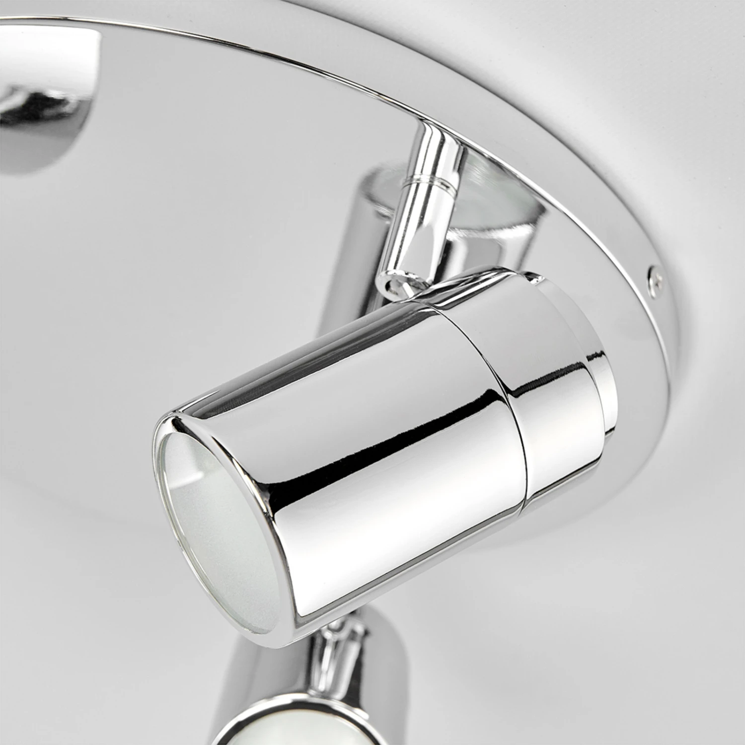 Dieses Deckenrondell Dejan ist zum einen platzsparend, bietet zum anderen aber eine doch recht großflächige Ausleuchtung. Diese Tatsache ist den drei Strahlern geschuldet, die an der runden Deckenbefestigung angebracht sind. Da die Strahler kipp- und drehbar sind, können mit dieser Deckenleuchte drei verschiedene Lichtrichtungen realisiert werden. Das Badezimmer ist von den zahlreichen Räumen, in denen Dejan Verwendung finden kann, nicht ausgenommen. Denn die Schutzart IP44 schützt die Leuchte gut gegen das Eindringen von Spritzwasser. Für Modernität und Zeitlosigkeit steht das chromglänzende Finish der Leuchte. Die GU10-Fassung lässt freie Wahl im Hinblick auf die einzusetzenden Leuchtmittel. So kann man zwischen herkömmlichen Halogenlampen, Energiesparlampen mit GU10-Sockel oder gar LED-Leuchtmitteln wählen.