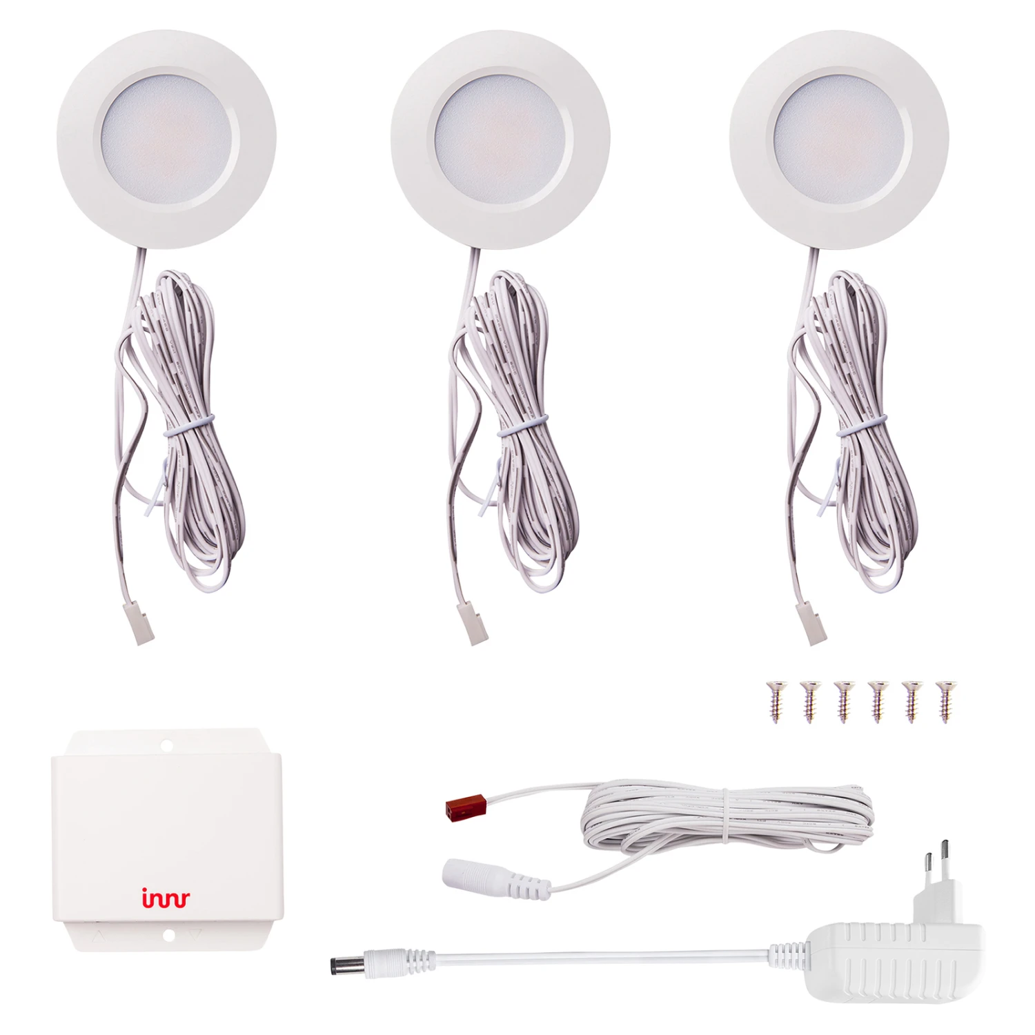 Die moderne LED-Einbauleuchte mit ihrem formschönen, runden Design bietet optimale Beleuchtung für die Arbeitsfläche unter Küchenschränken oder effektvolle Zusatzbeleuchtung, beispielsweise in Vitrinen. Dank des mitgelieferten Steuerkastens, können die Einbauleuchten in ein bestehendes Innr Smart-Home-System integriert und mit der kostenlosen Innr-App gesteuert werden. Die smarten Funktionen sind vielfältig und reichen von stufenlosem Dimmen bis hin zur intelligenten Sprachsteuerung, zum Beispiel über Alexa. Gerade in der Küche sind Sprachbefehle sehr nützlich, da zum Beispiel während des Kochens das Licht an-, ausgeschaltet oder gedimmt werden kann, ohne die aktuelle Arbeit zu unterbrechen.