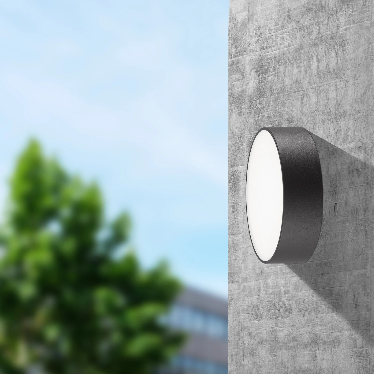 Anthrazitfarbenes, robustes Aluminium und weißes, hochwertiges Polycarbonat, das sind die beiden Bestandteile der modernen LED-Außenleuchte CMD 9026, die dafür sorgen, dass ihr Wind und Wetter kaum etwas anhaben können. Die elegante runde Form der Leuchte lässt sie zudem an der Decke wie auch an der Wand montiert glänzen. Die eingebauten LEDs leuchten gleichmäßig, blendfrei und mit einem warmweißen Licht die Umgebung aus und sorgen für Sicherheit und Orientierung. Ob an überdachten Außenbereichen, am Hauseingang oder auch an der Terrasse oder im Garten montiert, die Außenleuchte CMD 9026 macht überall eine gute Figur.