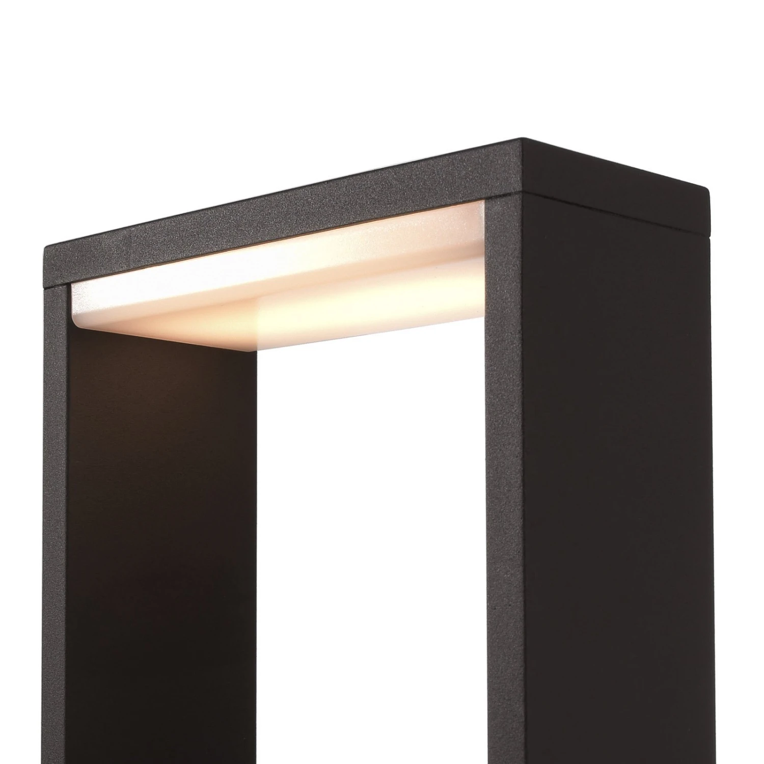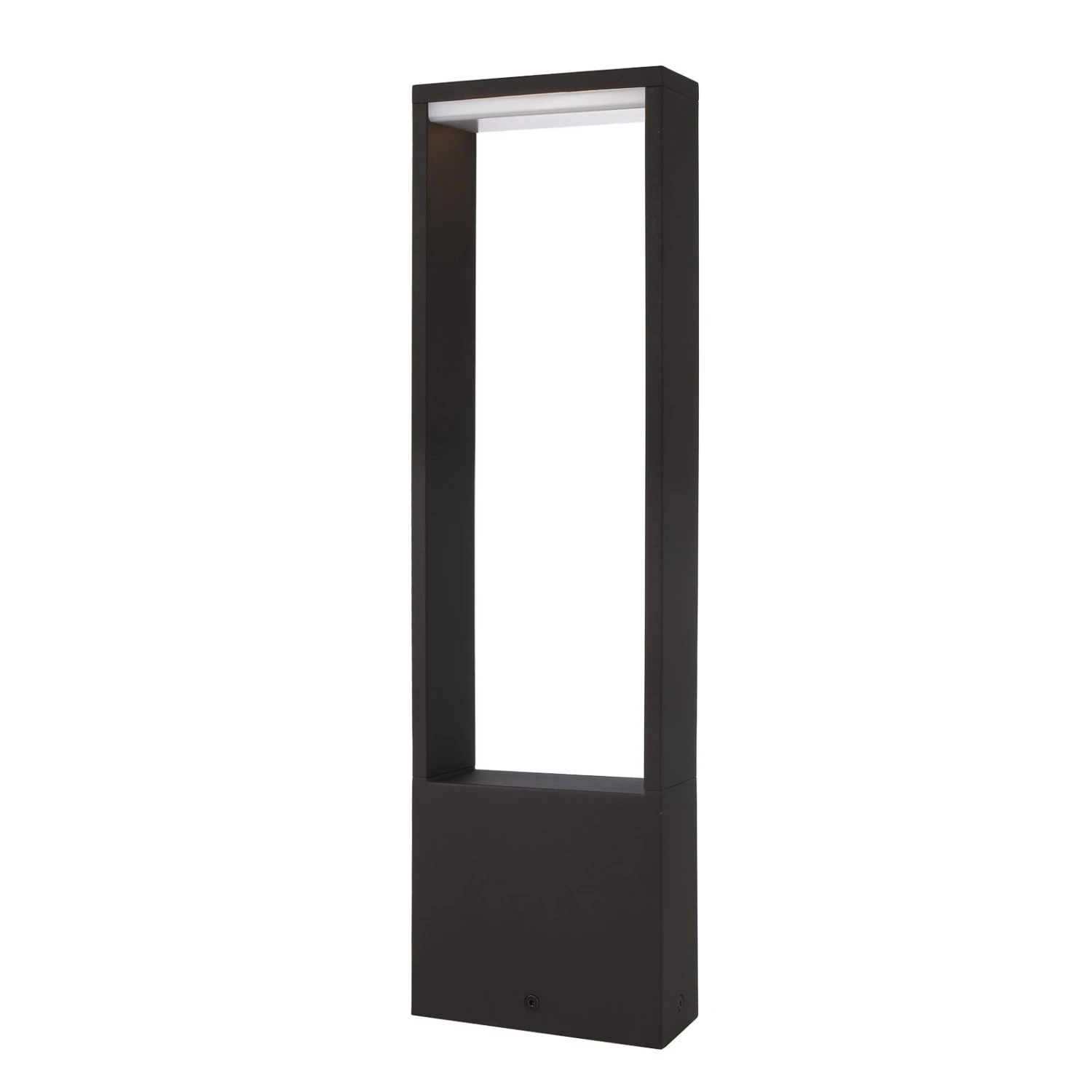 Als optisch zurückhaltendes, anthrazitfarbenes Rechteck aus Aluminium-Druckguss ist die Sockelleuchte Cata IV gestaltet. Die LEDs sind an der Unterseite des oberen Abschnitts hinter einer matten Abdeckung angebracht. Sie strahlen das Licht in einem breiten, diffusen Bereich nach unten aus und sorgen so für eine sanft erhellte Umgebung.