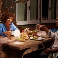 Akkubetriebene LED-Solartischleuchte Mineros mit Flammen-Effekt