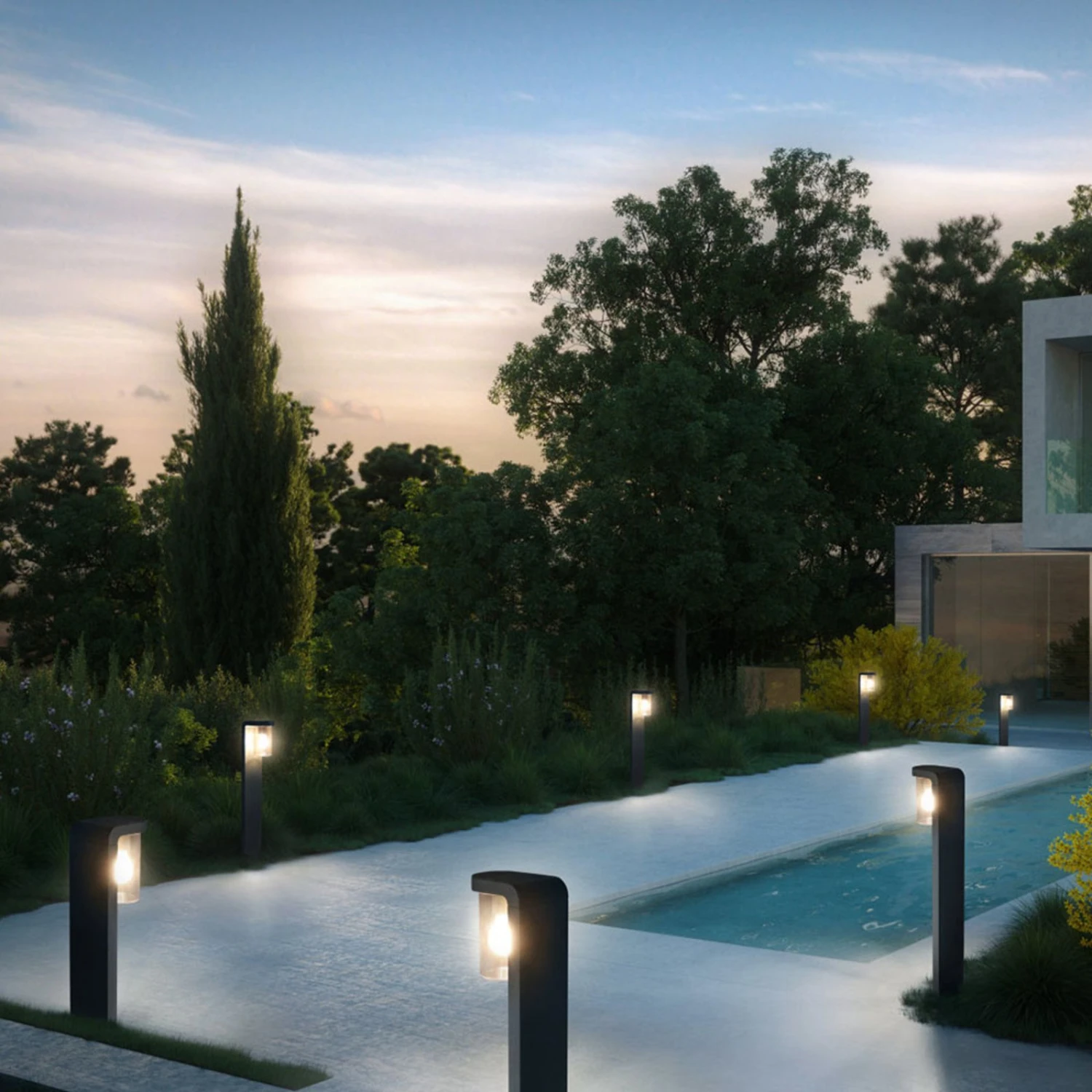 Sockelleuchte Endura Classic Cascade aus Aluminium mit Glaszylinder