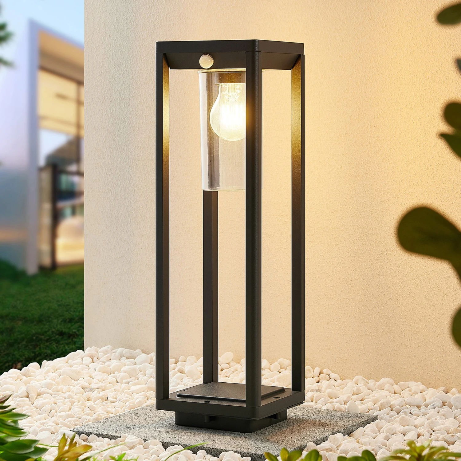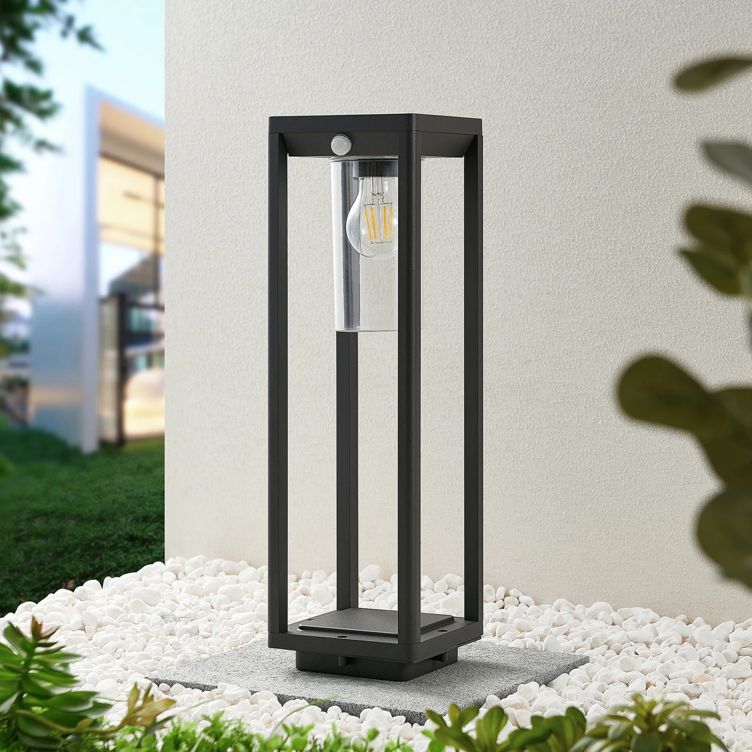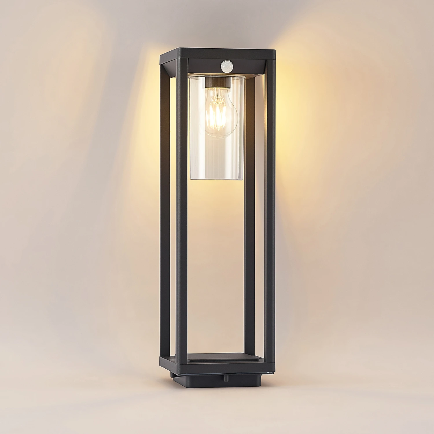 Dunkelgraue Sockelleuchte Abilum im modernen Design, sensorgesteuert