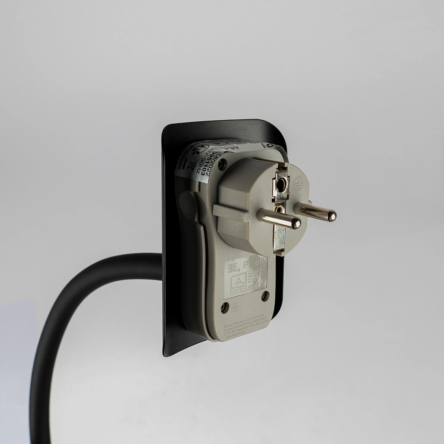 Flexibel ausrichtbare LED-Steckerleuchte Toulin in Schwarz mit integriertem Schalter und rundem Leuchtkopf, CCT-Farbwechsel