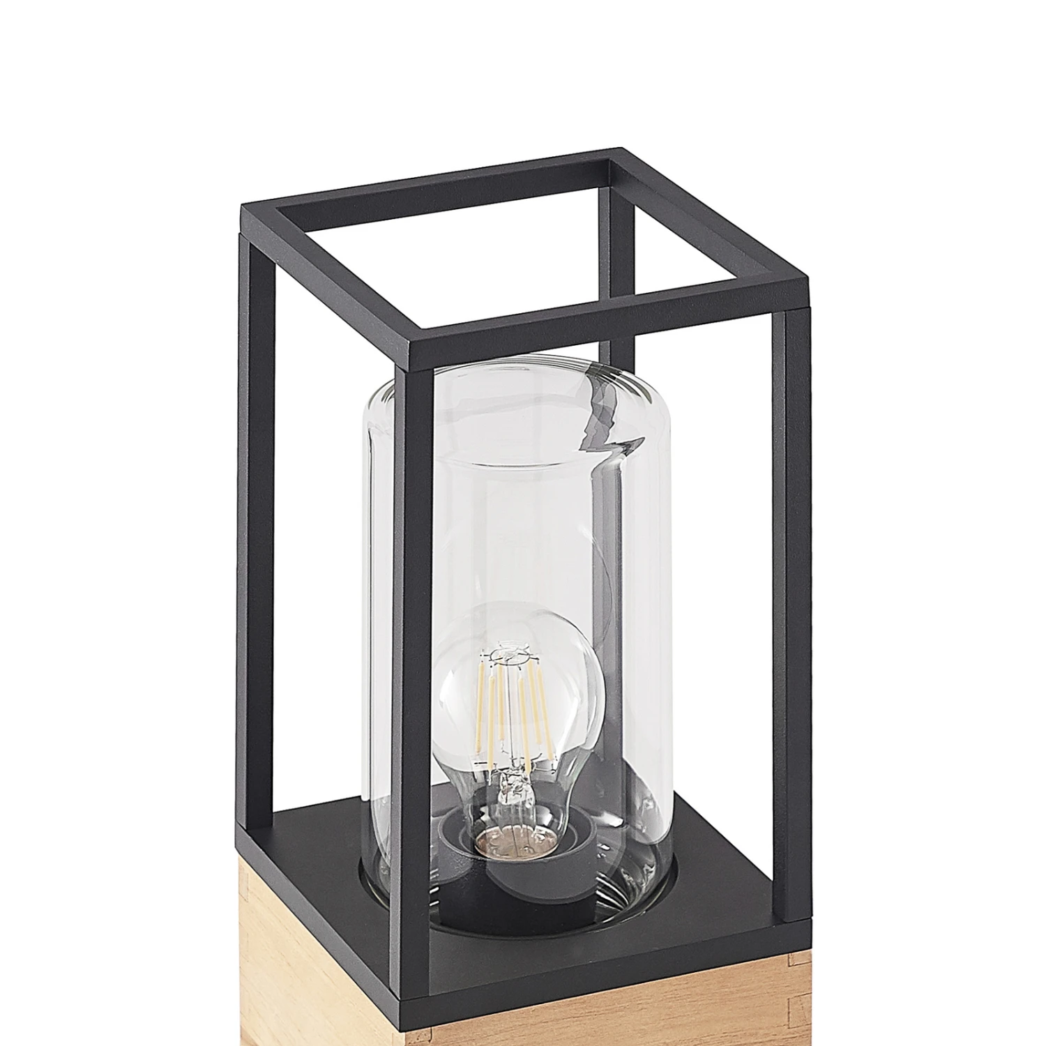 Eckige Außendeckenleuchte Enjan aus Aluminium und Teakholz