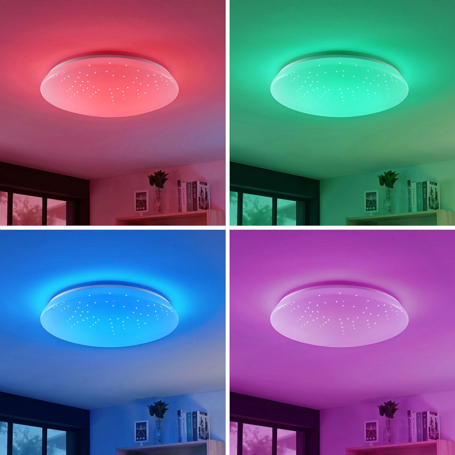 Runde LED-Deckenlampe Jelka mit RGBW-Farbwechselfunktion und WiZ-Technologie zum Steuern via App oder Fernbedienung, Smart-Home-Technologie