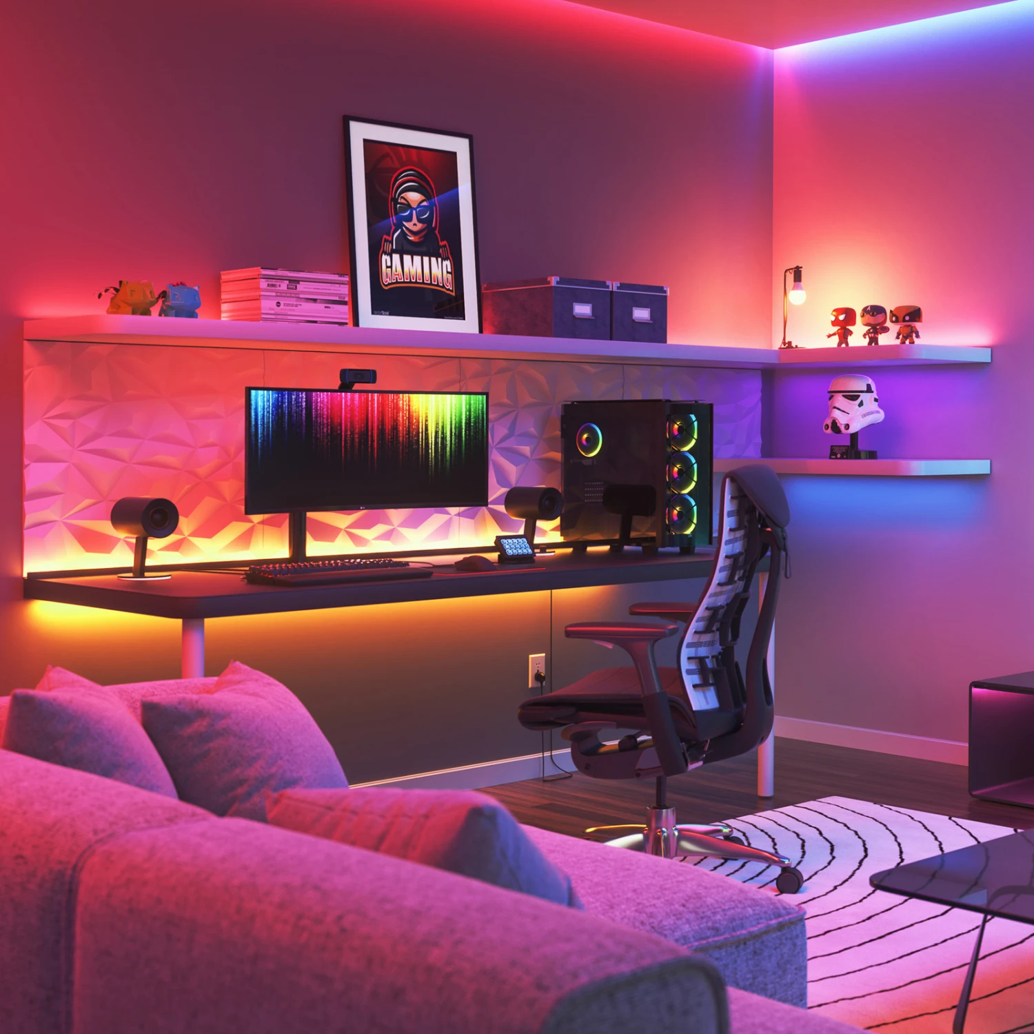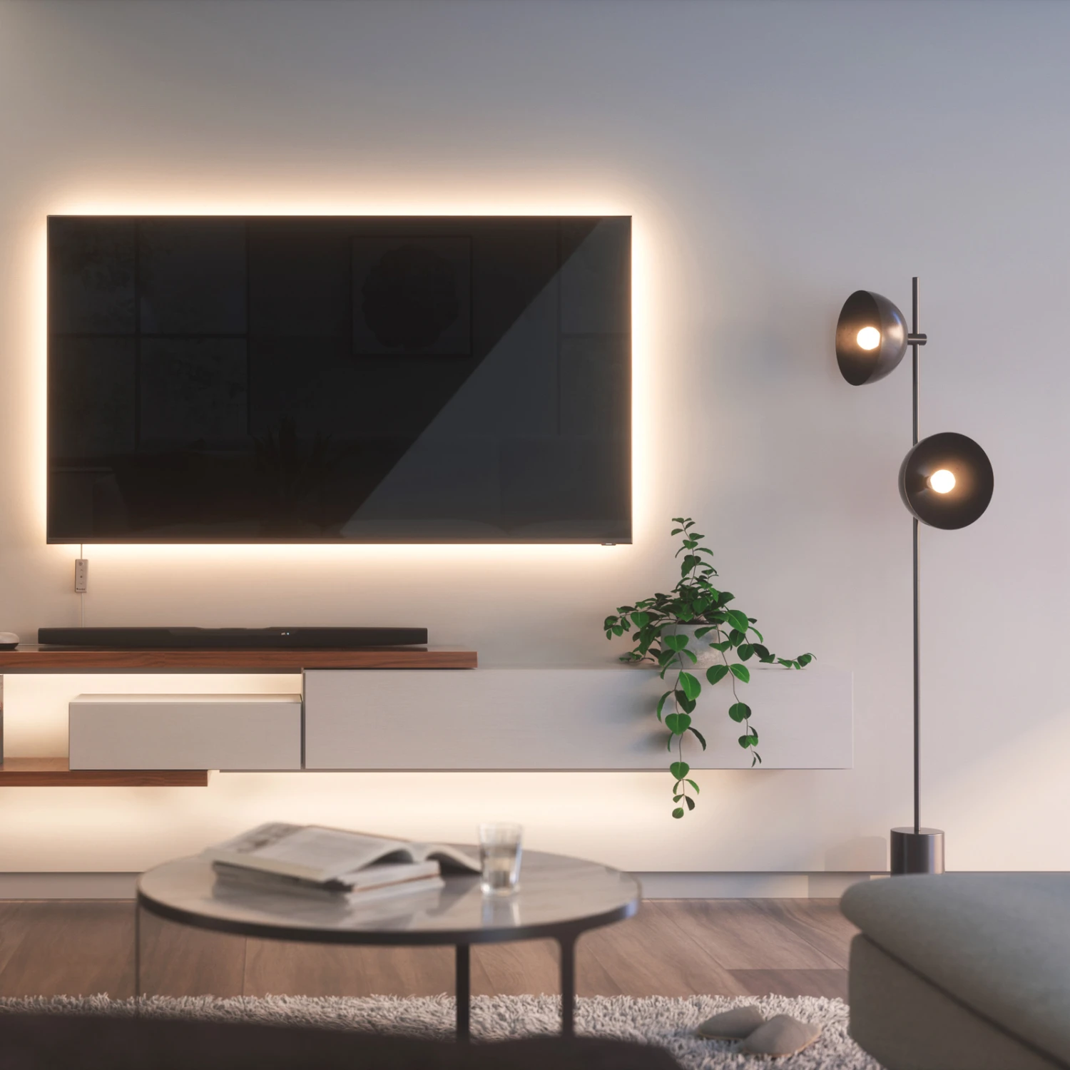 Schaffen Sie eine atemberaubende Hintergrundbeleuchtung in jedem Raum mit dem Nanoleaf Matter-fähigen intelligenten LED-Lichtstreifen Matter Lightstrip mit Farbwechsel. Dieser wird mit einem beigefügten Controller geliefert. Für die Steuerung direkt mit der kostenlosen Nanoleaf App ist lediglich ein Bluetooth-fähiges Smartphone oder Tablet erforderlich.