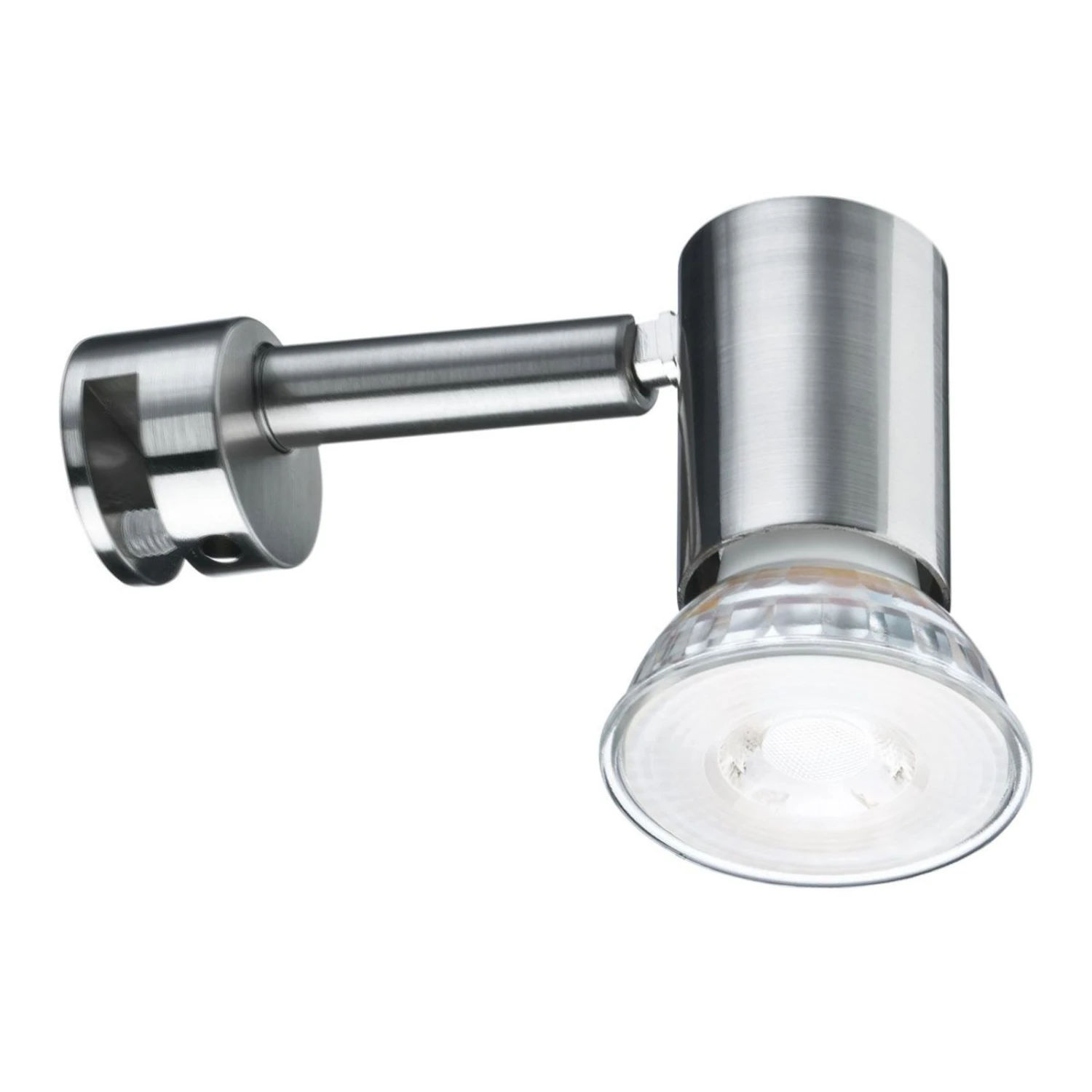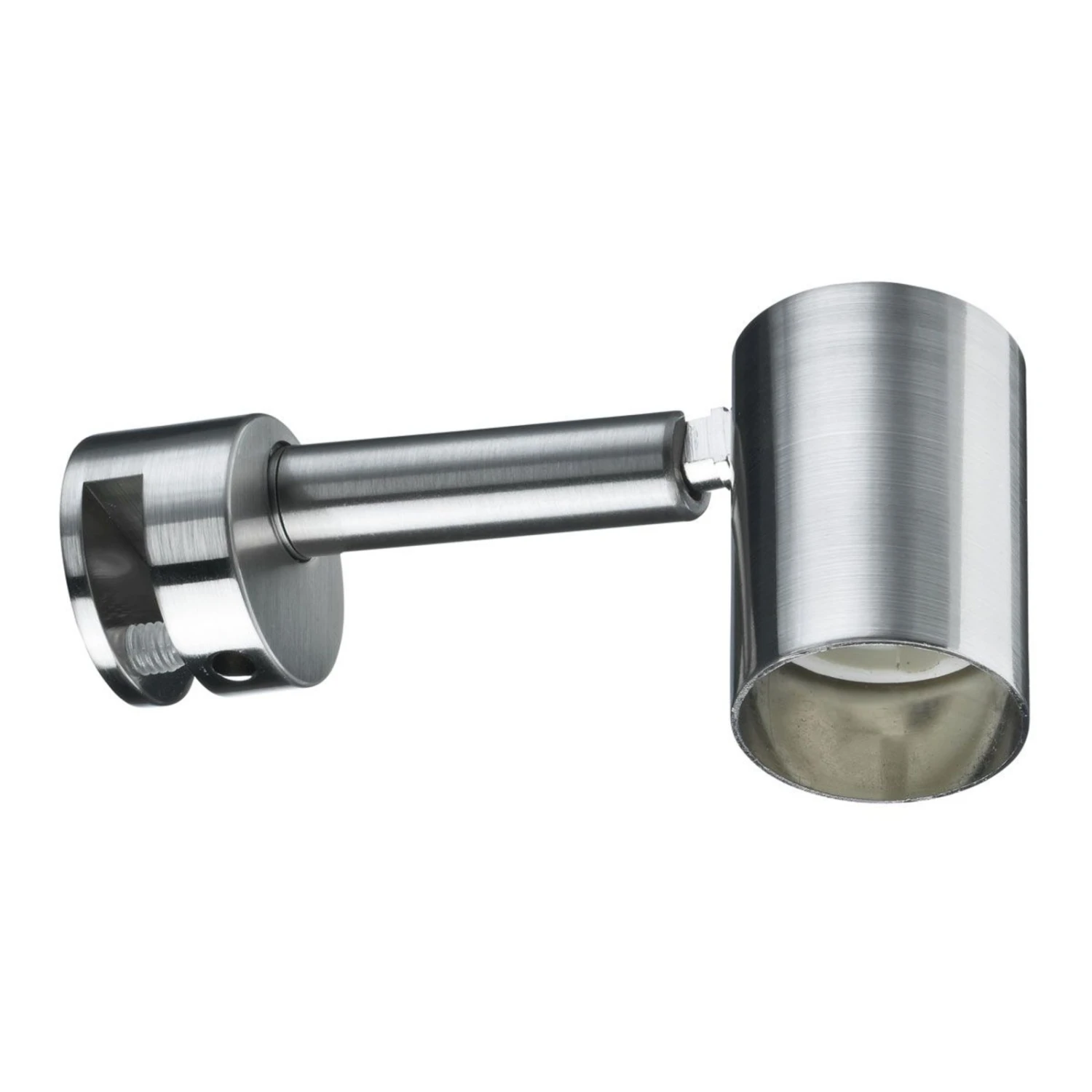 Die LED-Spiegelleuchte Simplo ist eine klassische Möbelaufbauleuchte, die direkt auf dem oberen Rand des Spiegels aufgesteckt und befestigt wird. An einem kleinen Arm ist ein beweglicher, runder Spotkopf installiert, der das Leuchtmittel enthält. Simplo garantiert durch die veränderbare Lichtverteilung eine optimale Ausleuchtung. Diese Leuchte ist aus Metall gefertigt und besticht durch ihre Oberfläche aus gebürstetem Eisen.