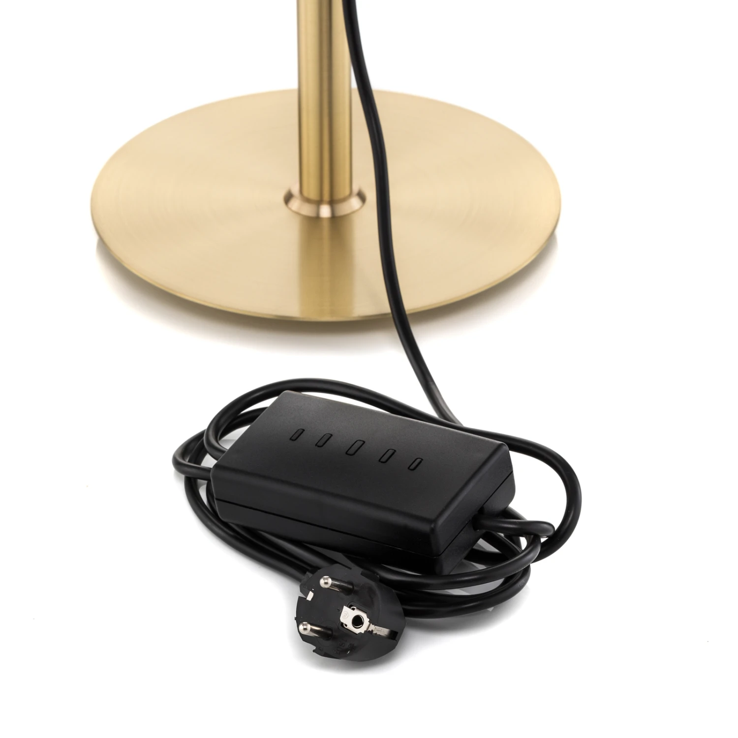 Lemalian überzeugt mit einem klassischen Design und einem höhenverstellbaren Gestell aus warmtönigem Messing. Die Höhe kann stufenlos von 63 cm bis 82 cm eingestellt werden und der Lampenschirm sorgt für eine weiche und wohnliche Lichtverteilung, so dass die Hockerleuchte einen prima Lichtspender für die abendliche Akzentbeleuchtung im Wohnzimmer darstellt. Über einen Tastdimmer lässt sich zudem die Helligkeit schön regulieren, wenn ein dimmbares Leuchtmittel verwendet wird.