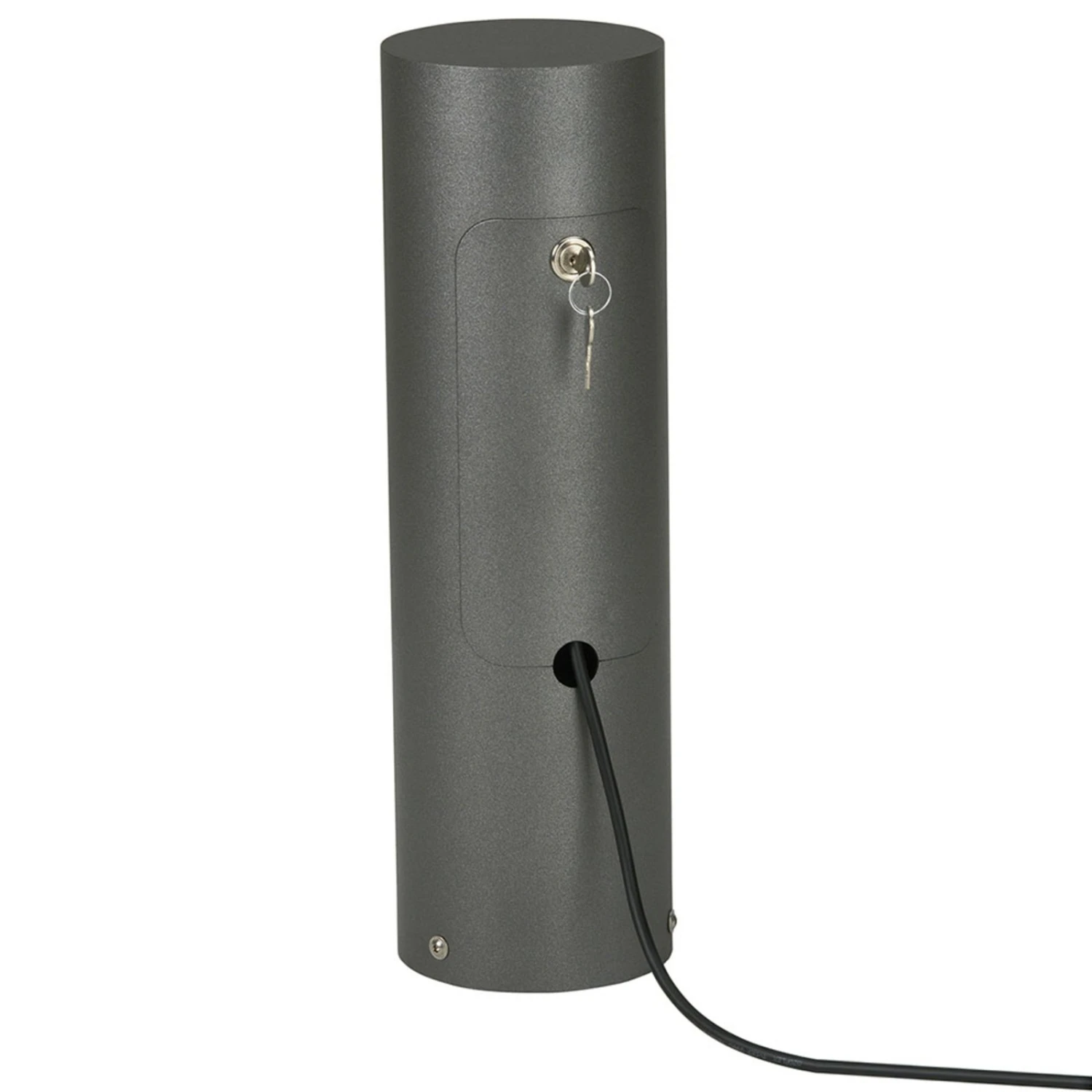 Die Steckdosensäule 4411 ist aus anthrazitgrauem Aluminium hergestellt und mit einer Tür zum Abschließen ausgestattet.