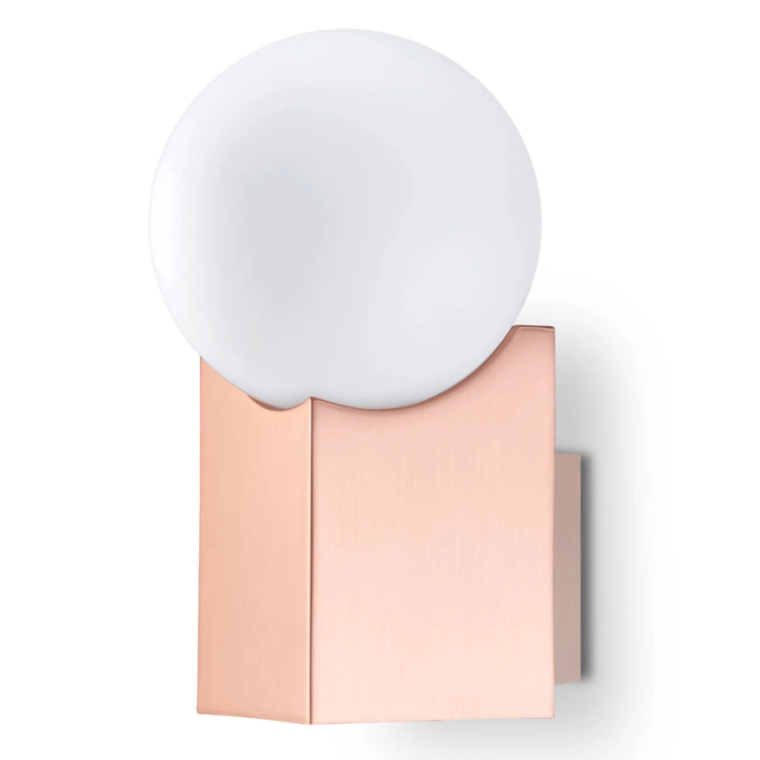 Farblich wird diese Wandleuchte deshalb zum Blickfang, weil das Metallgestell in der Farbe Kupfer gehalten ist und damit eine besondere Trendfarbe gewählt wurde. Die Grundform der Wandhalterung ist eckig, jedoch findet man auch ein kugelförmiges Element vor, das sich in eine Mulde im Metallquader fügt. Damit sind die universalsten geometrischen Formen bei dieser Wandleuchte gewissermaßen vereint und entstanden ist ein Lichtspender, der hervorragend zu Umgebungen passt, die mit einer trendbewussten, vielleicht auch puristisch ausgerichteten Einrichtung versehen worden sind.